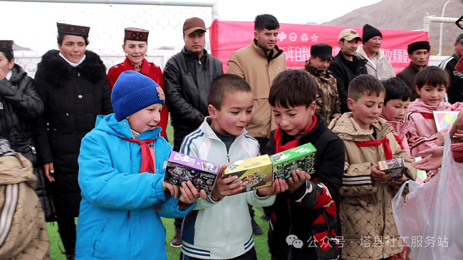 活动尾声,帕米尔社会服务中心为参与活动的每位小朋友送上了一份精心准备的礼物,包括益智七巧板、创意积木和彩色水彩笔等。这些礼物不仅承载着社会对儿童健康成长的关爱与祝福,也鼓励孩子们在活动结束后继续探索、创造,将活动中收获的快乐与启发延伸到日常生活与学习中。