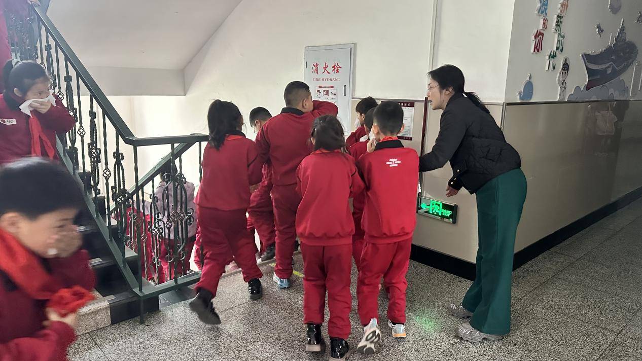 活动伊始,校园消防安全疏散演练有序开展。随着紧急警报声响起,全体教师迅速到位,引导学生弯腰、捂鼻,沿着预定疏散路线,快速、有序撤离至校园安全空旷区域,全程无拥挤、无慌乱。此次演练让学生熟练掌握火灾逃生技能,增强了消防安全意识和应急避险能力,筑牢了校园消防安全第一道防线。