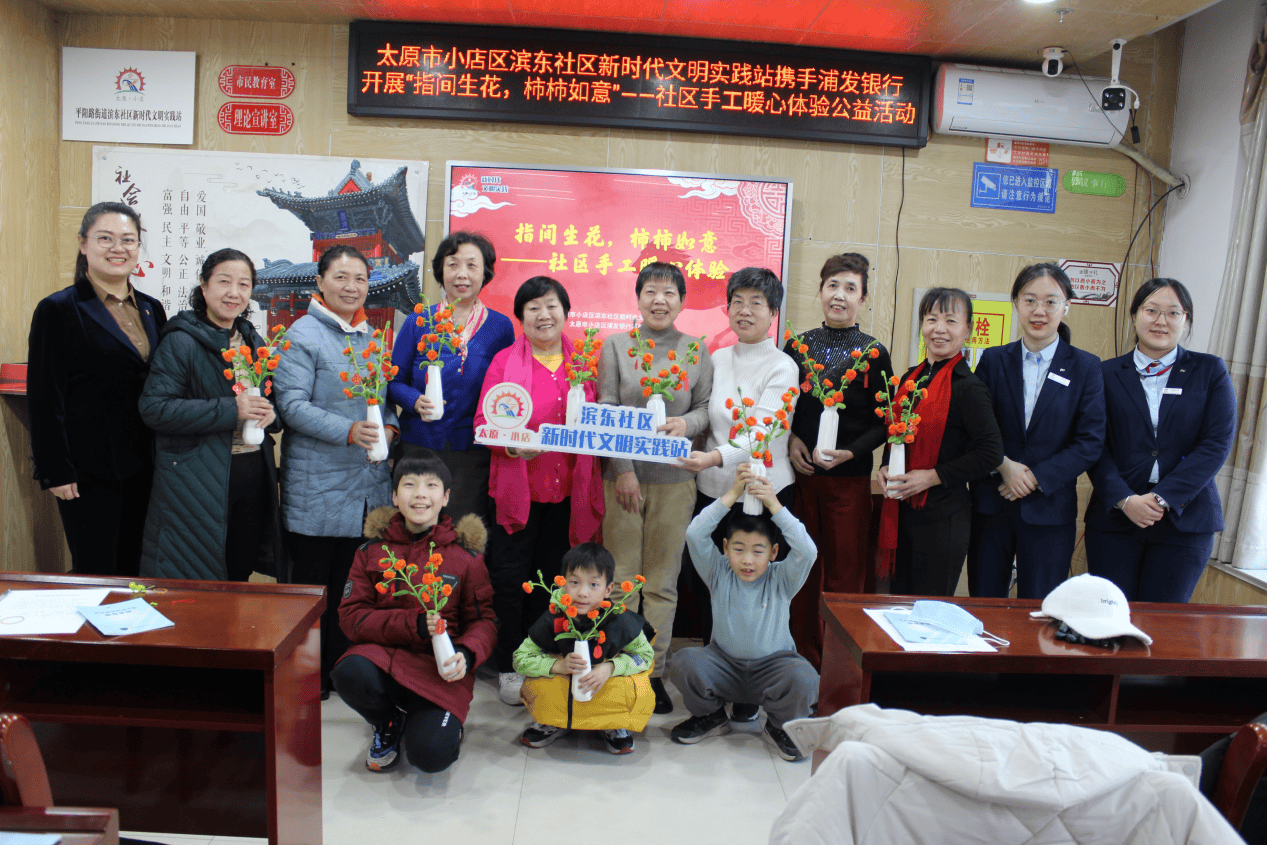 2026年2月9日,太原市小店区平阳路街道滨东社区新时代文明实践站内暖意融融,一场别开生面的“指间生花,柿柿如意”手工暖心体验活动在这里温馨开展。本次活动由社区新时代文明实践站携手辖区浦发银行高新支行联合举办,吸引了众多居民踊跃参与,现场欢声笑语不断,洋溢着浓浓的年节氛围。