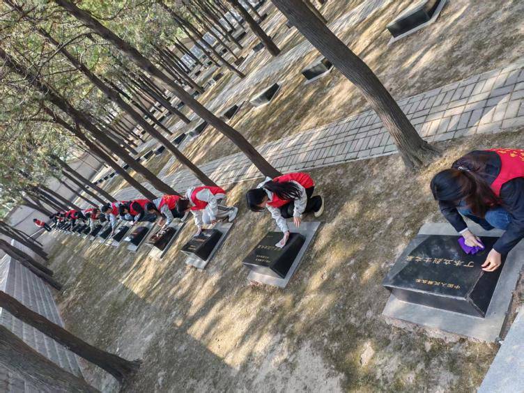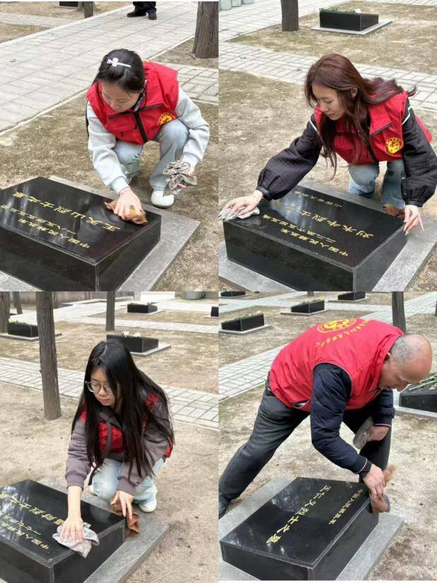 整个活动过程中,志愿者们分工协作、默契配合,不喧哗、不嬉闹,始终保持庄重肃穆的氛围。有人专注擦拭墓碑,让英烈之名清晰明亮;有人细心清扫路面,让陵园道路洁净舒展;有人认真整理环境,让苍松翠柏更显挺拔。大家不怕累、不嫌脏,用双手还陵园一片清净,用敬意给英雄一份尊崇。