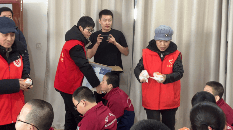在学校老师的引导下,志愿者们走进教室、活动室,与孩子们展开了丰富多彩的互动。有的志愿者耐心地为孩子们分发水果和汉堡,看着孩子们大口品尝美食时满足的模样,志愿者们的脸上也洋溢着幸福的笑容,还有的志愿者与孩子们一起做游戏,鼓励他们大胆表达、勇敢参与,现场氛围温馨而热烈。面对志愿者们的真诚陪伴,孩子们渐渐放下羞涩,用稚嫩的声音说着“谢谢”,用笨拙却真挚的动作回应着关爱,这份双向的温暖让在场的每一个人都备受触动。